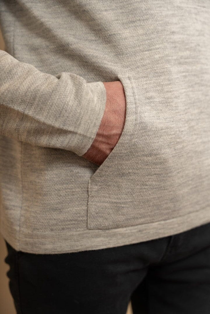 Experience the Baby Alpaca/Cotton Hoodie that discerning customers have requested for years. This expertly crafted piece marries baby alpaca's unparalleled softness with cotton's reliable comfort, delivering a garment that feels as good as it looks. The thoughtfully designed slim fit, classic hood, and convenient front pocket make it the perfect companion for any season—whether you're layering through spring or seeking lightweight warmth in fall.