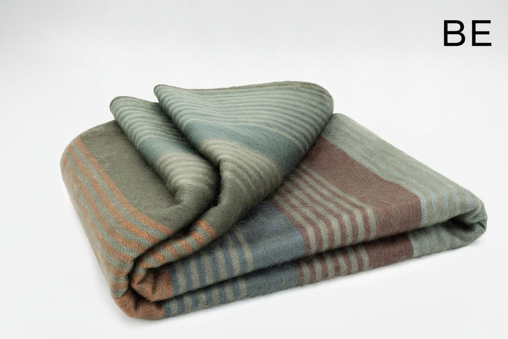 Wonderfully warm and beautiful brushed striped alpaca bed blankets.