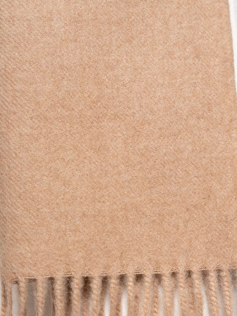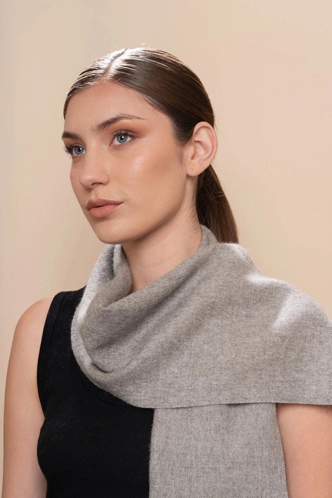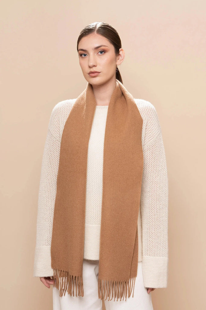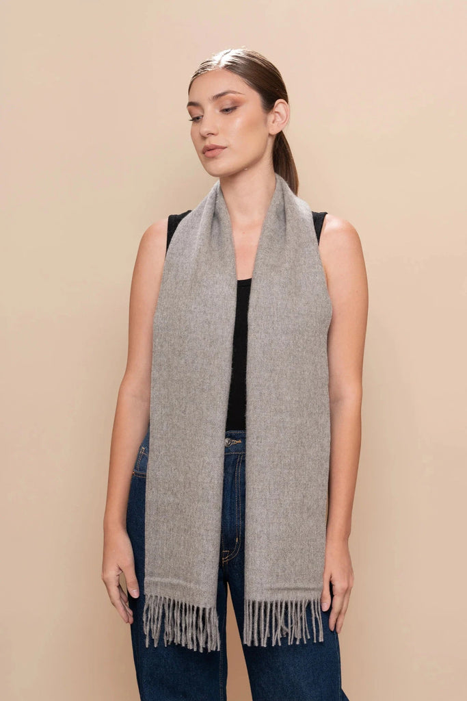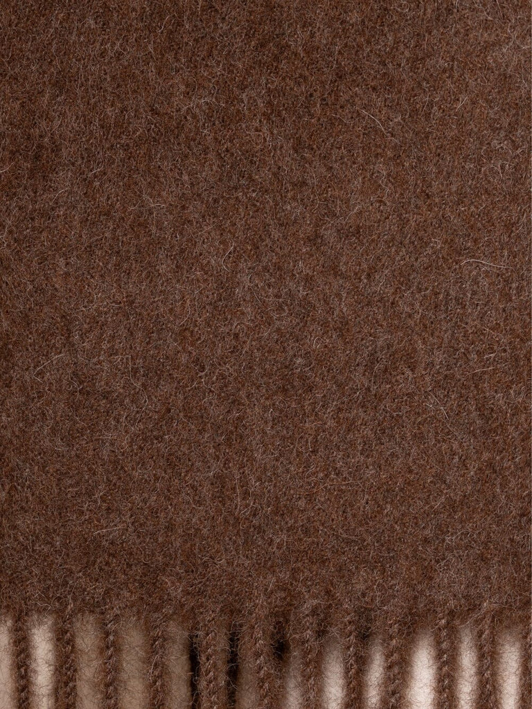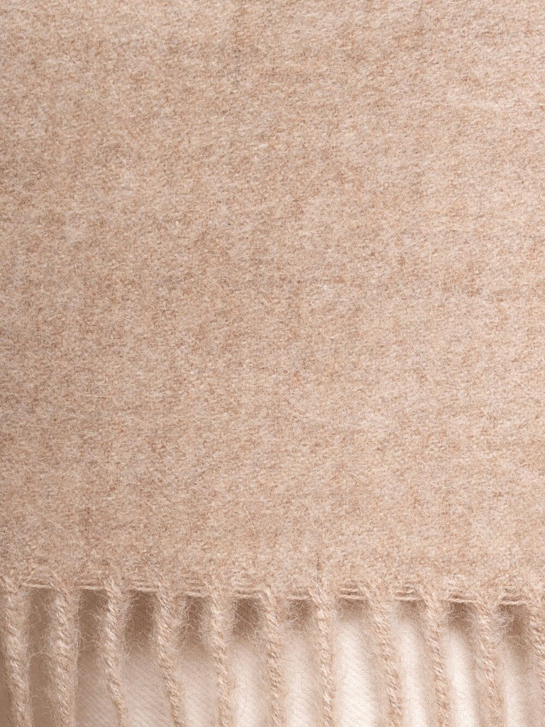 Crafted from luxuriously soft 100% baby alpaca, this undyed natural scarf embodies understated elegance and sustainable style. The soft gently brushed texture provides warmth and comfort, while the artfully twisted fringes add refined detail.